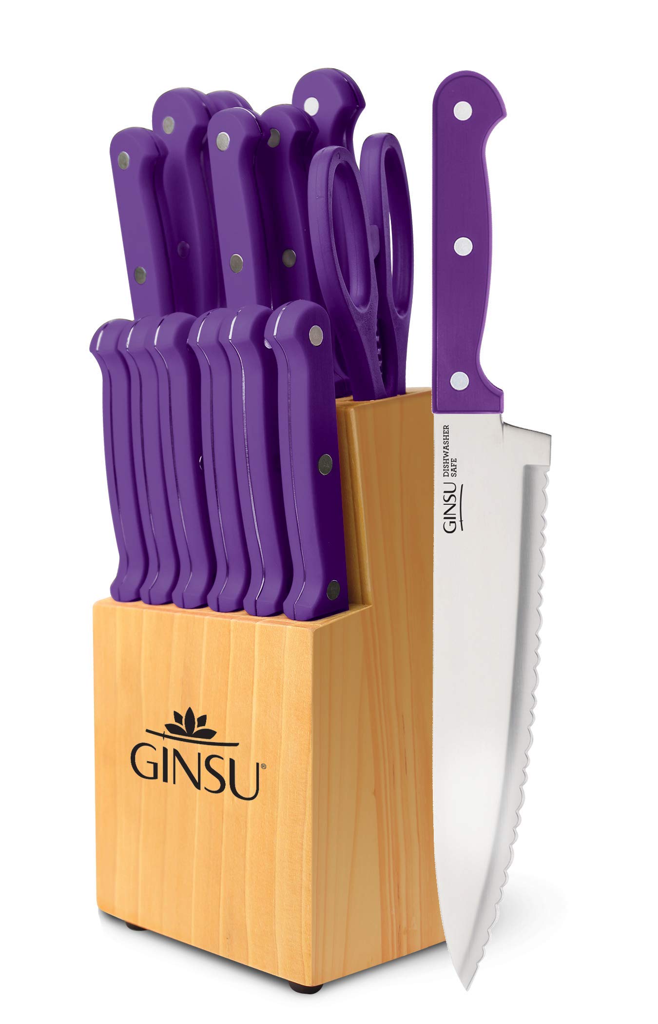 Home Home & Kitchen Ginsu Kiso 14-Piece Purple Knife Set with Natural Block – Dishwasher Safe and Always Sharp