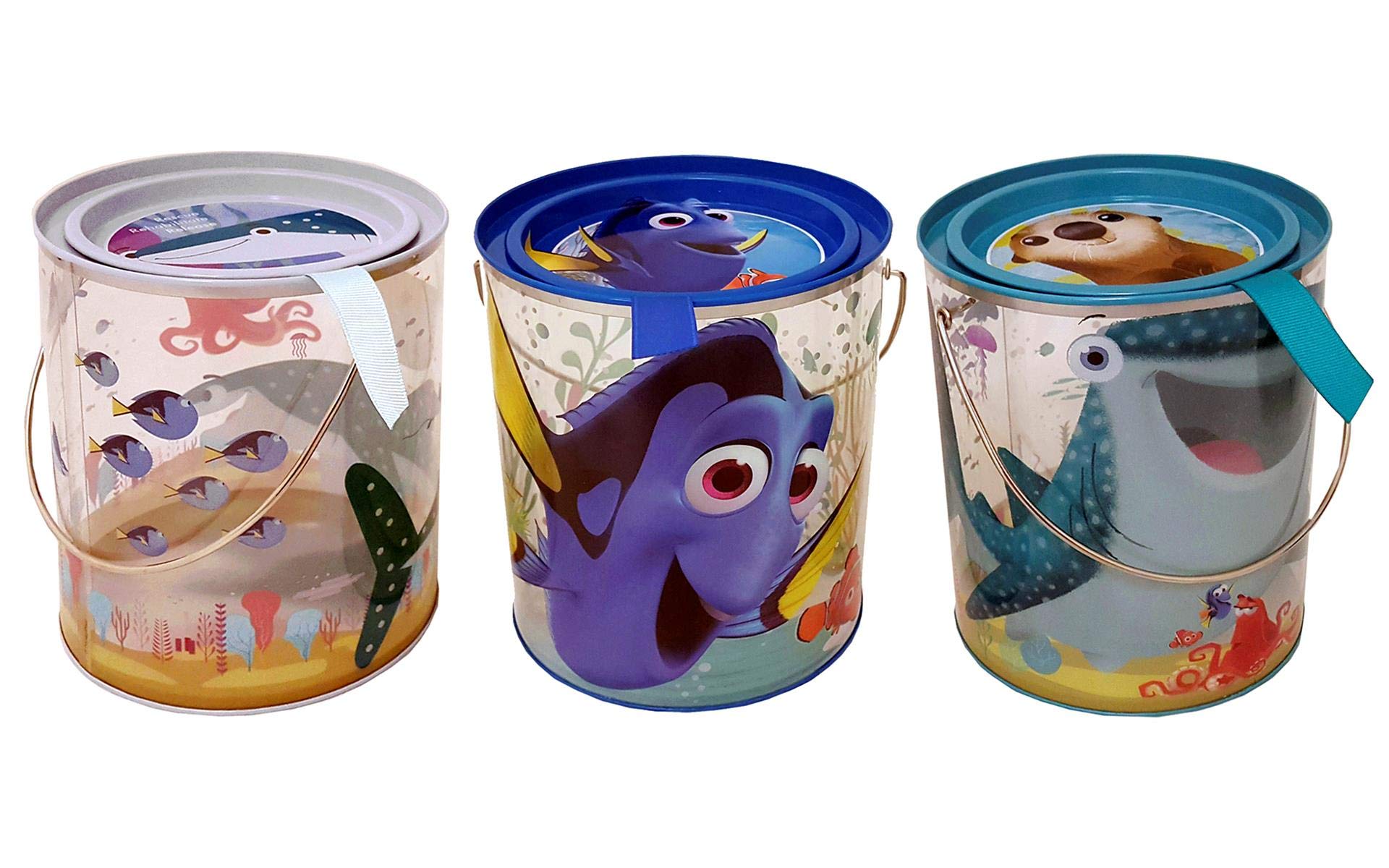Clear plastic sides with characters from Disney-Pixar’s Finding Dory